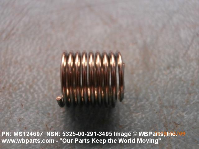 5325-00-291-3495 A cylindrical item which may have wrenching and/or driving facilities and/or shoulders. It is designed to be inserted in a drilled, tapped or a pretapped hole, or molded or pressed into soft material to reduce the size of a tapped hole; to provide threads; to add strength, and/or to prevent stripping. It is one of the following: (1) a one-piece, flanged or unflanged, internally threaded item which may have external threads, and/or serrations around the periphery of the collar, designed to engage a serrated lock ring which is not included with the item; (2) a one-piece precision coiled wire; (3) a two-piece item consisting of an internally threaded cylinder and a mating externally threaded part; or (4) a one-piece internally threaded item whose outside diameter is tapered and/or knurled and/or with fin(s). The internal thread of the item may have a locking feature. Excludes items having a sleeve on on its under portion which can be clinched or crimped. Excludes BUSHING,MACHINE THREAD; NUT,PLAIN,KNURLED; NUT,PLAIN,ROUND; NUT,PLAIN,CLINCH and NUT,SELF-LOCKING,CLINCH. See also NUT,PLAIN,PLATE
