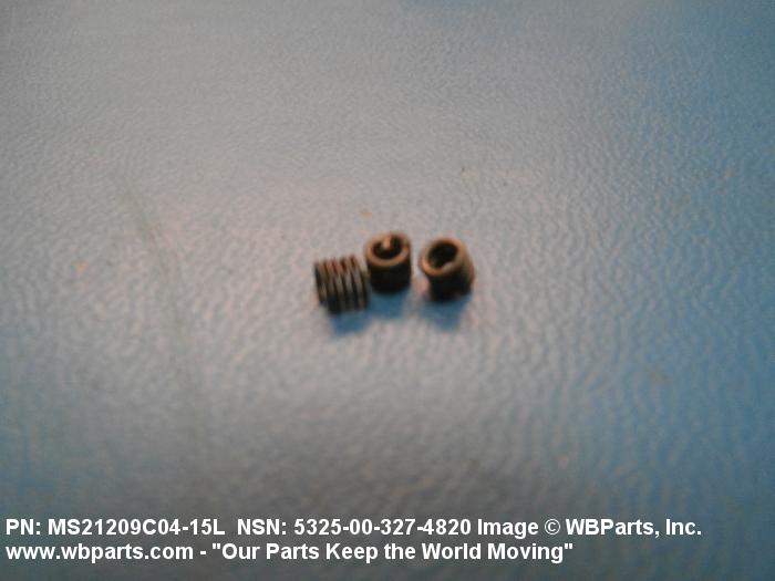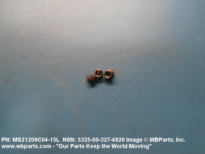 5325-00-327-4820 A cylindrical item which may have wrenching and/or driving facilities and/or shoulders. It is designed to be inserted in a drilled, tapped or a pretapped hole, or molded or pressed into soft material to reduce the size of a tapped hole; to provide threads; to add strength, and/or to prevent stripping. It is one of the following: (1) a one-piece, flanged or unflanged, internally threaded item which may have external threads, and/or serrations around the periphery of the collar, designed to engage a serrated lock ring which is not included with the item; (2) a one-piece precision coiled wire; (3) a two-piece item consisting of an internally threaded cylinder and a mating externally threaded part; or (4) a one-piece internally threaded item whose outside diameter is tapered and/or knurled and/or with fin(s). The internal thread of the item may have a locking feature. Excludes items having a sleeve on on its under portion which can be clinched or crimped. Excludes BUSHING,MACHINE THREAD; NUT,PLAIN,KNURLED; NUT,PLAIN,ROUND; NUT,PLAIN,CLINCH and NUT,SELF-LOCKING,CLINCH. See also NUT,PLAIN,PLATE