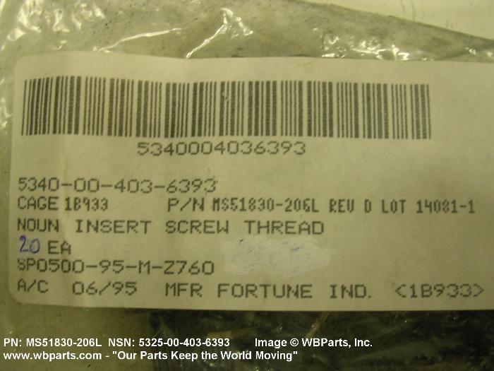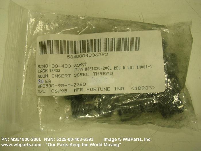 NSN 5325-00-403-6393 MS51830206, MS51830-206, MS51830206L