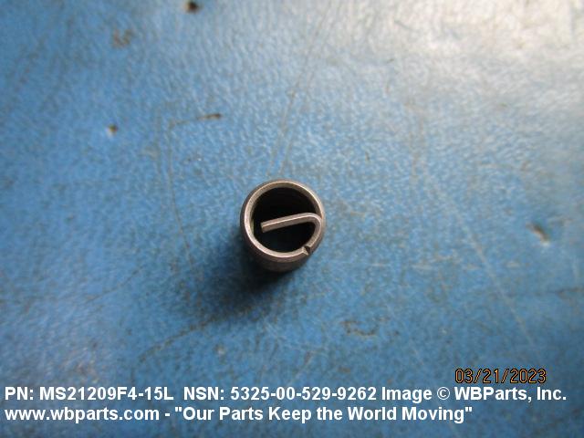 5325-00-529-9262 A cylindrical item which may have wrenching and/or driving facilities and/or shoulders. It is designed to be inserted in a drilled, tapped or a pretapped hole, or molded or pressed into soft material to reduce the size of a tapped hole; to provide threads; to add strength, and/or to prevent stripping. It is one of the following: (1) a one-piece, flanged or unflanged, internally threaded item which may have external threads, and/or serrations around the periphery of the collar, designed to engage a serrated lock ring which is not included with the item; (2) a one-piece precision coiled wire; (3) a two-piece item consisting of an internally threaded cylinder and a mating externally threaded part; or (4) a one-piece internally threaded item whose outside diameter is tapered and/or knurled and/or with fin(s). The internal thread of the item may have a locking feature. Excludes items having a sleeve on on its under portion which can be clinched or crimped. Excludes BUSHING,MACHINE THREAD; NUT,PLAIN,KNURLED; NUT,PLAIN,ROUND; NUT,PLAIN,CLINCH and NUT,SELF-LOCKING,CLINCH. See also NUT,PLAIN,PLATE