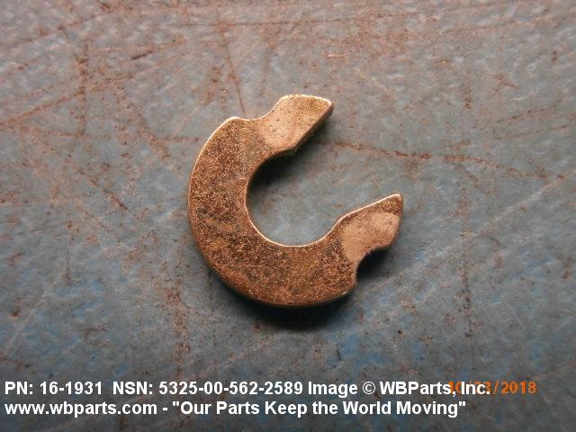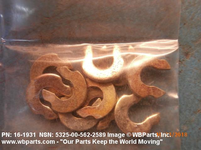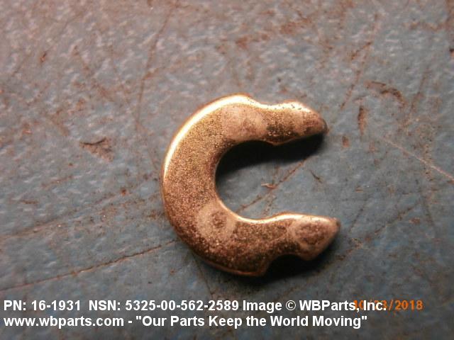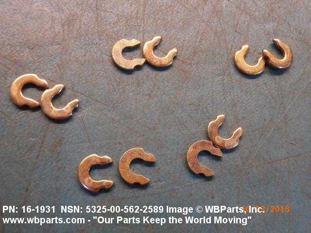5325-00-562-2589 A resilient metal item, circular or nearly circular, which is designed to be inserted into an internal or external groove and retained by its own spring action, or it may have external prongs or projections designed to be inserted into a hole and retained by spring action of the prongs which grip by imbedding into the material. For items having internal prongs which perform the same function, see PUSH ON NUT. It is used to keep and/or lock a part(s) in position, as a ball bearing on a shaft or in a housing. See also CLIP, RETAINING and PIN, LOCK. Excludes RING, CONNECTING, ROUND.