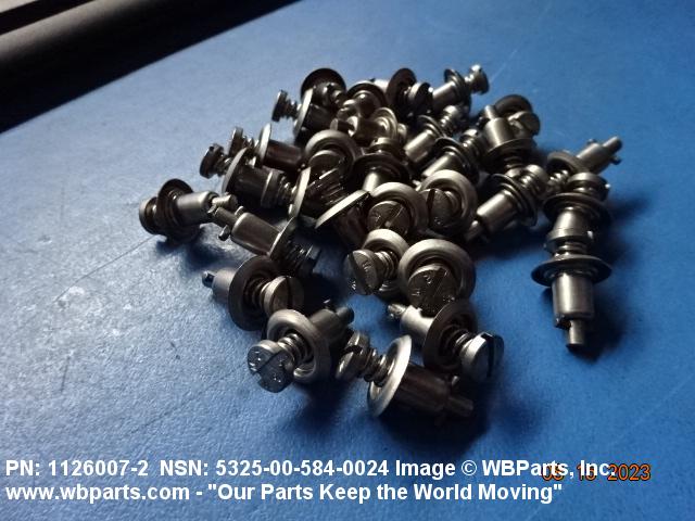 5325-00-584-0024 A STUD, TURNLOCK FASTENER over which may be assembled an EYELET, TURNLOCK FASTENER. Stud(s) without cam slots or cam lead threads are provided with a crosspin or eared nut for locking with the mating RECEPTACLE, TURNLOCK FASTENER. May be spring loaded. For like items having a threaded fastener, see SCREW ASSEMBLY, PANEL or SCREW, PANEL FASTENER.