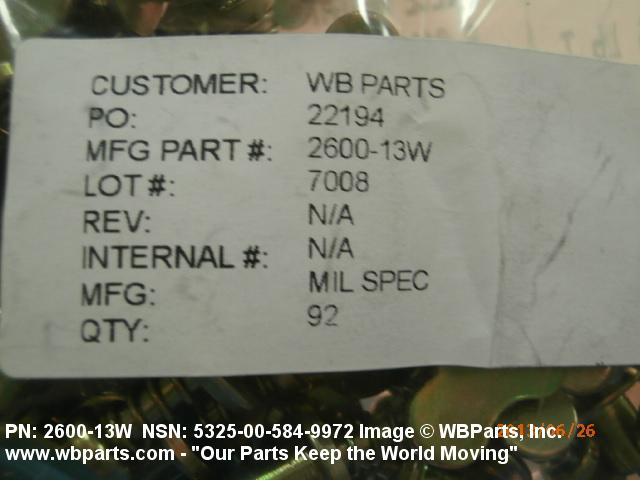 Part Alternates: FS10922, FS1092-2, 1126010-13, 260013W, 2600-13W, 5325-00-584-9972, 00-584-9972, 5325005849972, 112601013, 005849972