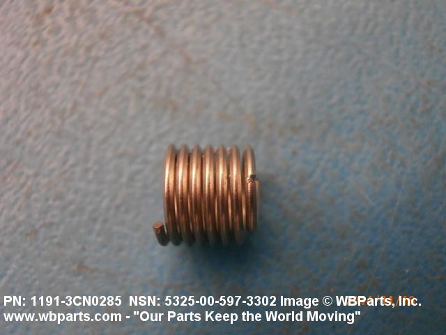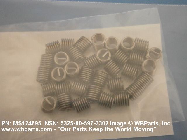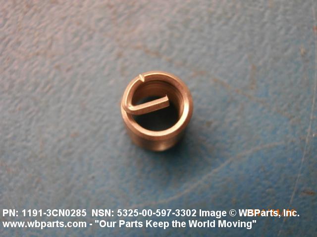 5325-00-597-3302 A cylindrical item which may have wrenching and/or driving facilities and/or shoulders. It is designed to be inserted in a drilled, tapped or a pretapped hole, or molded or pressed into soft material to reduce the size of a tapped hole; to provide threads; to add strength, and/or to prevent stripping. It is one of the following: (1) a one-piece, flanged or unflanged, internally threaded item which may have external threads, and/or serrations around the periphery of the collar, designed to engage a serrated lock ring which is not included with the item; (2) a one-piece precision coiled wire; (3) a two-piece item consisting of an internally threaded cylinder and a mating externally threaded part; or (4) a one-piece internally threaded item whose outside diameter is tapered and/or knurled and/or with fin(s). The internal thread of the item may have a locking feature. Excludes items having a sleeve on on its under portion which can be clinched or crimped. Excludes BUSHING,MACHINE THREAD; NUT,PLAIN,KNURLED; NUT,PLAIN,ROUND; NUT,PLAIN,CLINCH and NUT,SELF-LOCKING,CLINCH. See also NUT,PLAIN,PLATE