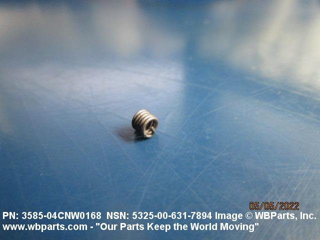 5325-00-631-7894 A cylindrical item which may have wrenching and/or driving facilities and/or shoulders. It is designed to be inserted in a drilled, tapped or a pretapped hole, or molded or pressed into soft material to reduce the size of a tapped hole; to provide threads; to add strength, and/or to prevent stripping. It is one of the following: (1) a one-piece, flanged or unflanged, internally threaded item which may have external threads, and/or serrations around the periphery of the collar, designed to engage a serrated lock ring which is not included with the item; (2) a one-piece precision coiled wire; (3) a two-piece item consisting of an internally threaded cylinder and a mating externally threaded part; or (4) a one-piece internally threaded item whose outside diameter is tapered and/or knurled and/or with fin(s). The internal thread of the item may have a locking feature. Excludes items having a sleeve on on its under portion which can be clinched or crimped. Excludes BUSHING,MACHINE THREAD; NUT,PLAIN,KNURLED; NUT,PLAIN,ROUND; NUT,PLAIN,CLINCH and NUT,SELF-LOCKING,CLINCH. See also NUT,PLAIN,PLATE