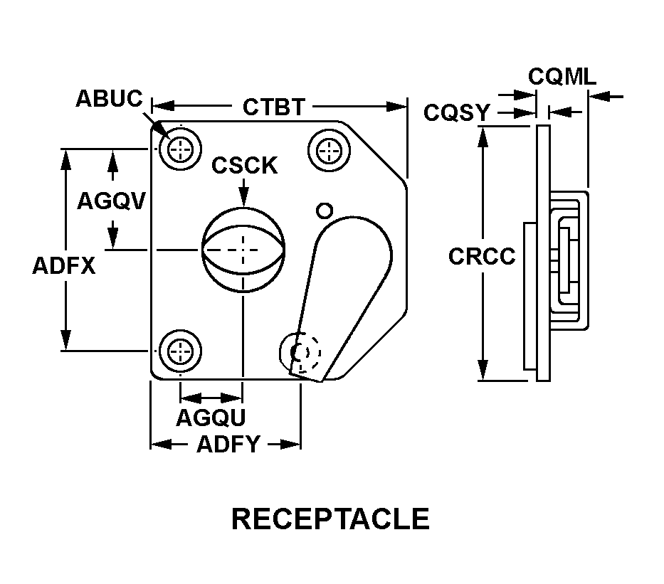| RECEPTACLE HOLE DIAMETER | 0.562 INCHES NOMINAL |