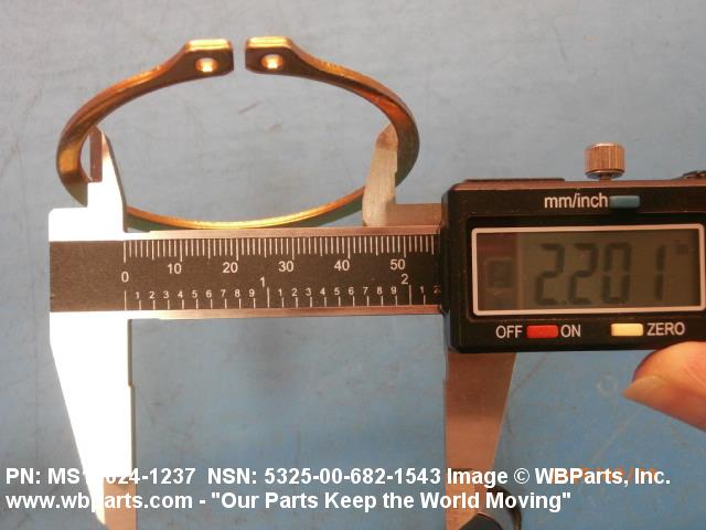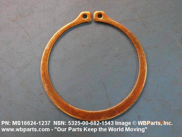 5325-00-682-1543 A resilient metal item, circular or nearly circular, which is designed to be inserted into an internal or external groove and retained by its own spring action, or it may have external prongs or projections designed to be inserted into a hole and retained by spring action of the prongs which grip by imbedding into the material. For items having internal prongs which perform the same function, see PUSH ON NUT. It is used to keep and/or lock a part(s) in position, as a ball bearing on a shaft or in a housing. See also CLIP, RETAINING and PIN, LOCK. Excludes RING, CONNECTING, ROUND.