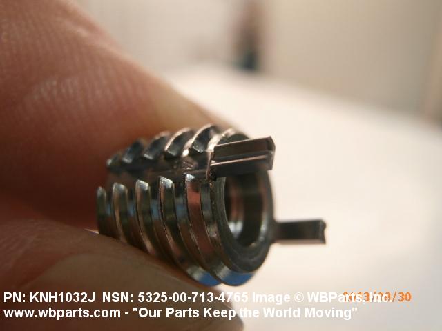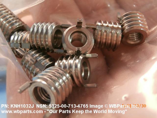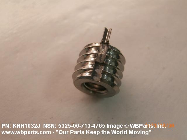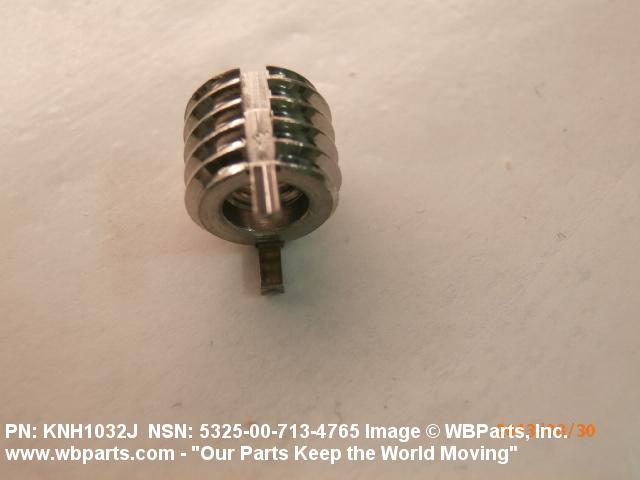 5325-00-713-4765 A cylindrical item which may have wrenching and/or driving facilities and/or shoulders. It is designed to be inserted in a drilled, tapped or a pretapped hole, or molded or pressed into soft material to reduce the size of a tapped hole; to provide threads; to add strength, and/or to prevent stripping. It is one of the following: (1) a one-piece, flanged or unflanged, internally threaded item which may have external threads, and/or serrations around the periphery of the collar, designed to engage a serrated lock ring which is not included with the item; (2) a one-piece precision coiled wire; (3) a two-piece item consisting of an internally threaded cylinder and a mating externally threaded part; or (4) a one-piece internally threaded item whose outside diameter is tapered and/or knurled and/or with fin(s). The internal thread of the item may have a locking feature. Excludes items having a sleeve on on its under portion which can be clinched or crimped. Excludes BUSHING,MACHINE THREAD; NUT,PLAIN,KNURLED; NUT,PLAIN,ROUND; NUT,PLAIN,CLINCH and NUT,SELF-LOCKING,CLINCH. See also NUT,PLAIN,PLATE
