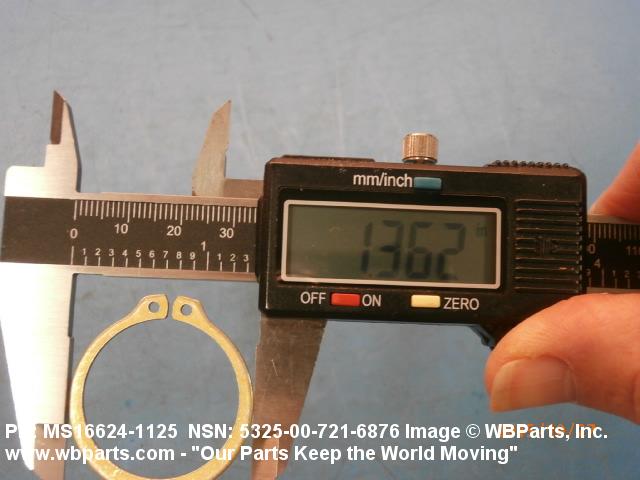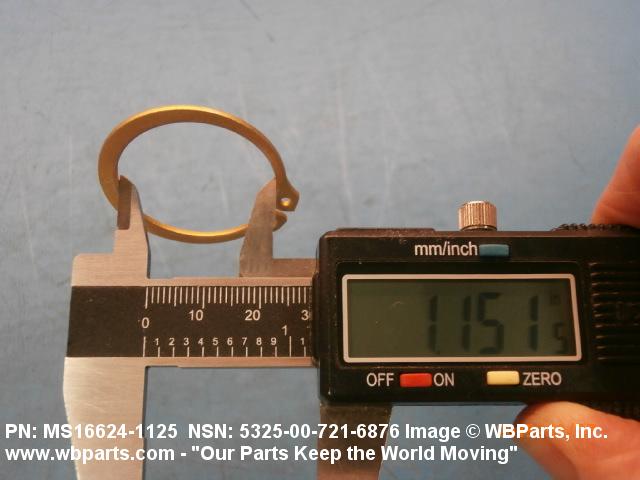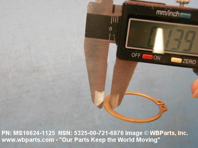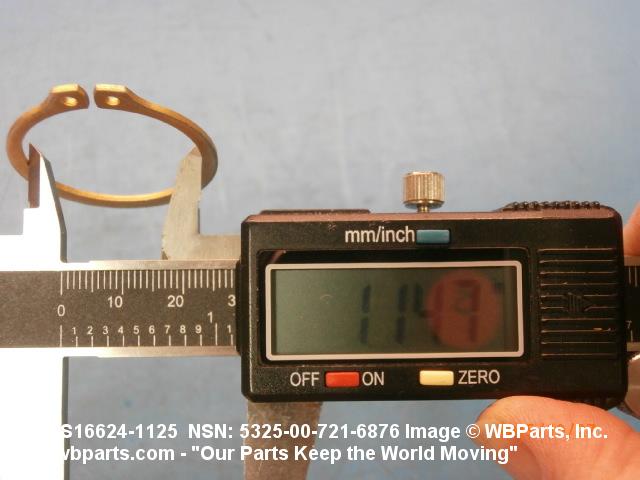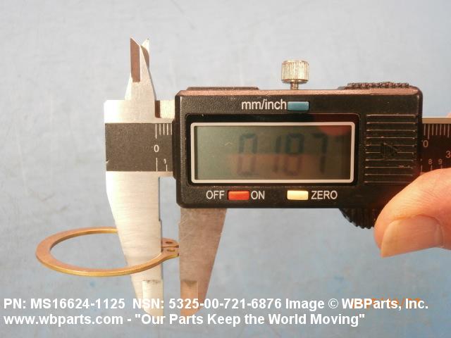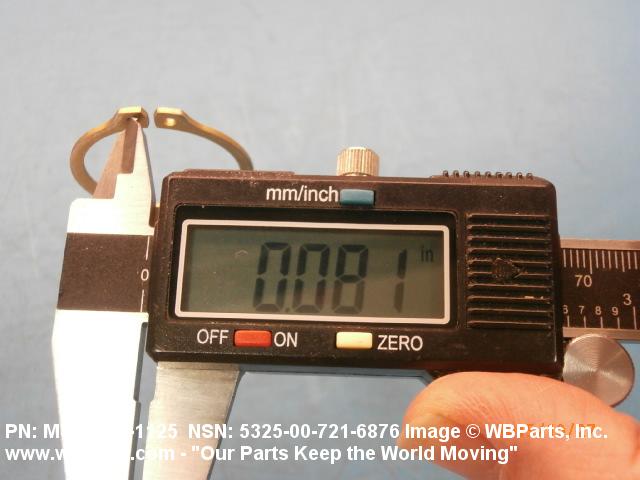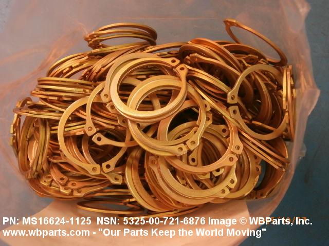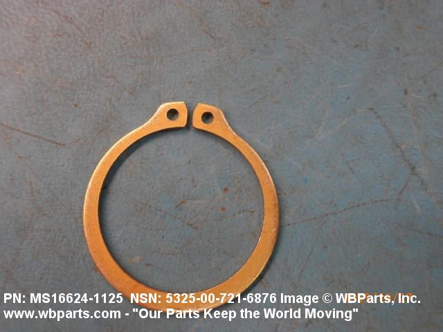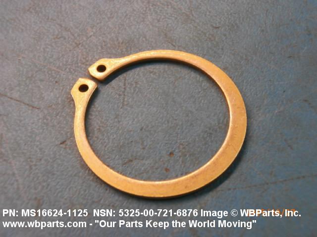 5325-00-721-6876 A resilient metal item, circular or nearly circular, which is designed to be inserted into an internal or external groove and retained by its own spring action, or it may have external prongs or projections designed to be inserted into a hole and retained by spring action of the prongs which grip by imbedding into the material. For items having internal prongs which perform the same function, see PUSH ON NUT. It is used to keep and/or lock a part(s) in position, as a ball bearing on a shaft or in a housing. See also CLIP, RETAINING and PIN, LOCK. Excludes RING, CONNECTING, ROUND.