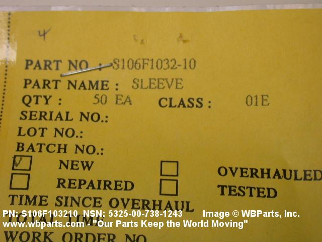 NSN 5325-00-738-1243 S106F103210, S106F1032-10, 00-738-1243