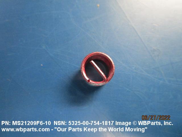 5325-00-754-1817 A cylindrical item which may have wrenching and/or driving facilities and/or shoulders. It is designed to be inserted in a drilled, tapped or a pretapped hole, or molded or pressed into soft material to reduce the size of a tapped hole; to provide threads; to add strength, and/or to prevent stripping. It is one of the following: (1) a one-piece, flanged or unflanged, internally threaded item which may have external threads, and/or serrations around the periphery of the collar, designed to engage a serrated lock ring which is not included with the item; (2) a one-piece precision coiled wire; (3) a two-piece item consisting of an internally threaded cylinder and a mating externally threaded part; or (4) a one-piece internally threaded item whose outside diameter is tapered and/or knurled and/or with fin(s). The internal thread of the item may have a locking feature. Excludes items having a sleeve on on its under portion which can be clinched or crimped. Excludes BUSHING,MACHINE THREAD; NUT,PLAIN,KNURLED; NUT,PLAIN,ROUND; NUT,PLAIN,CLINCH and NUT,SELF-LOCKING,CLINCH. See also NUT,PLAIN,PLATE