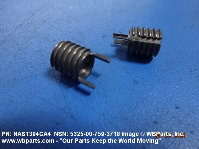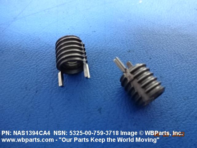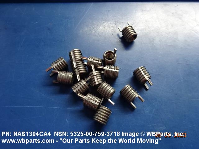 5325-00-759-3718 A cylindrical item which may have wrenching and/or driving facilities and/or shoulders. It is designed to be inserted in a drilled, tapped or a pretapped hole, or molded or pressed into soft material to reduce the size of a tapped hole; to provide threads; to add strength, and/or to prevent stripping. It is one of the following: (1) a one-piece, flanged or unflanged, internally threaded item which may have external threads, and/or serrations around the periphery of the collar, designed to engage a serrated lock ring which is not included with the item; (2) a one-piece precision coiled wire; (3) a two-piece item consisting of an internally threaded cylinder and a mating externally threaded part; or (4) a one-piece internally threaded item whose outside diameter is tapered and/or knurled and/or with fin(s). The internal thread of the item may have a locking feature. Excludes items having a sleeve on on its under portion which can be clinched or crimped. Excludes BUSHING,MACHINE THREAD; NUT,PLAIN,KNURLED; NUT,PLAIN,ROUND; NUT,PLAIN,CLINCH and NUT,SELF-LOCKING,CLINCH. See also NUT,PLAIN,PLATE