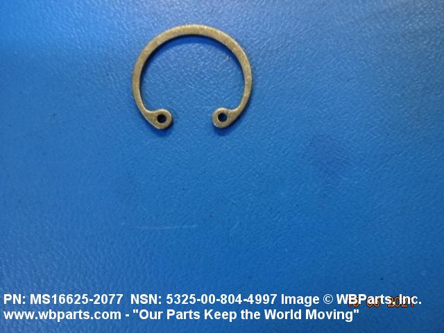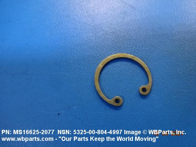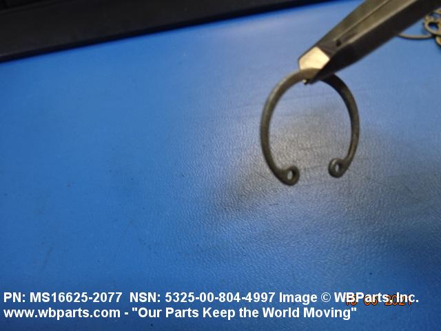 5325-00-804-4997 A resilient metal item, circular or nearly circular, which is designed to be inserted into an internal or external groove and retained by its own spring action, or it may have external prongs or projections designed to be inserted into a hole and retained by spring action of the prongs which grip by imbedding into the material. For items having internal prongs which perform the same function, see PUSH ON NUT. It is used to keep and/or lock a part(s) in position, as a ball bearing on a shaft or in a housing. See also CLIP, RETAINING and PIN, LOCK. Excludes RING, CONNECTING, ROUND.