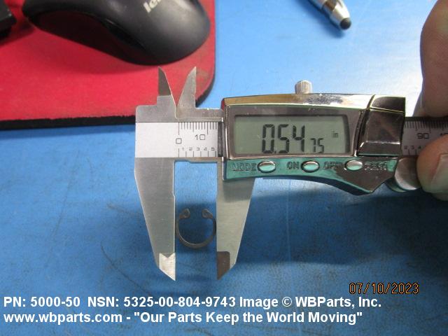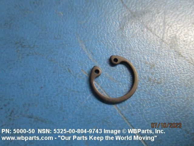 5325-00-804-9743 A resilient metal item, circular or nearly circular, which is designed to be inserted into an internal or external groove and retained by its own spring action, or it may have external prongs or projections designed to be inserted into a hole and retained by spring action of the prongs which grip by imbedding into the material. For items having internal prongs which perform the same function, see PUSH ON NUT. It is used to keep and/or lock a part(s) in position, as a ball bearing on a shaft or in a housing. See also CLIP, RETAINING and PIN, LOCK. Excludes RING, CONNECTING, ROUND.