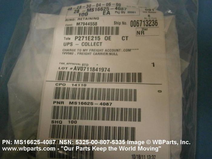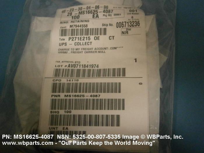 Part Alternates: MS166254087, MS16625-4087, N130087AS, N1300-87AS, N500087H, N5000-87H, N5000X87H, N5000-X87-H , Z15, Z1-5, 1016311, 1016-311, 280668 ITEM 93, 280668ITEM93, 3000X87SS2, 3000-X87-SS2, 4111714087, 411171-4087, 41901012087, 4190101-2087, 41901012087H, 4190101-2087H, 4912865-10, 5325-00-807-5335, 00-807-5335, 5325008075335, 008075335, 491286510
