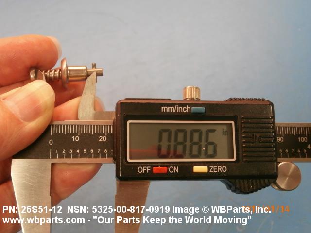 Part Alternates: 0124961120, 012-4961-120, 26S5112, 26S51-12, 77C719297P012, 91756874, 9175687-4, 5325-00-817-0919, 00-817-0919, 5325008170919, 008170919