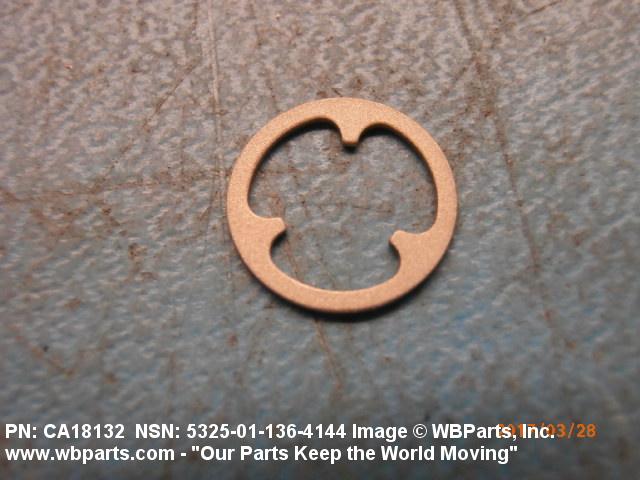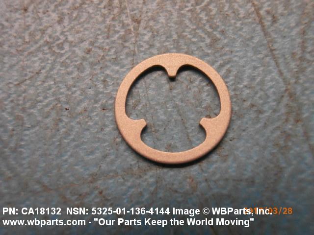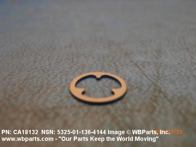 5325-00-824-3279 A resilient metal item, circular or nearly circular, which is designed to be inserted into an internal or external groove and retained by its own spring action, or it may have external prongs or projections designed to be inserted into a hole and retained by spring action of the prongs which grip by imbedding into the material. For items having internal prongs which perform the same function, see PUSH ON NUT. It is used to keep and/or lock a part(s) in position, as a ball bearing on a shaft or in a housing. See also CLIP, RETAINING and PIN, LOCK. Excludes RING, CONNECTING, ROUND.