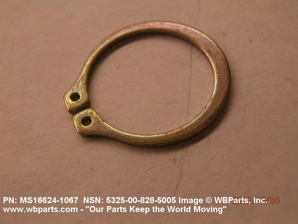 5325-00-828-5005 A resilient metal item, circular or nearly circular, which is designed to be inserted into an internal or external groove and retained by its own spring action, or it may have external prongs or projections designed to be inserted into a hole and retained by spring action of the prongs which grip by imbedding into the material. For items having internal prongs which perform the same function, see PUSH ON NUT. It is used to keep and/or lock a part(s) in position, as a ball bearing on a shaft or in a housing. See also CLIP, RETAINING and PIN, LOCK. Excludes RING, CONNECTING, ROUND.