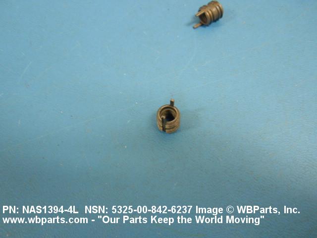 5325-00-842-6237 A cylindrical item which may have wrenching and/or driving facilities and/or shoulders. It is designed to be inserted in a drilled, tapped or a pretapped hole, or molded or pressed into soft material to reduce the size of a tapped hole; to provide threads; to add strength, and/or to prevent stripping. It is one of the following: (1) a one-piece, flanged or unflanged, internally threaded item which may have external threads, and/or serrations around the periphery of the collar, designed to engage a serrated lock ring which is not included with the item; (2) a one-piece precision coiled wire; (3) a two-piece item consisting of an internally threaded cylinder and a mating externally threaded part; or (4) a one-piece internally threaded item whose outside diameter is tapered and/or knurled and/or with fin(s). The internal thread of the item may have a locking feature. Excludes items having a sleeve on on its under portion which can be clinched or crimped. Excludes BUSHING,MACHINE THREAD; NUT,PLAIN,KNURLED; NUT,PLAIN,ROUND; NUT,PLAIN,CLINCH and NUT,SELF-LOCKING,CLINCH. See also NUT,PLAIN,PLATE