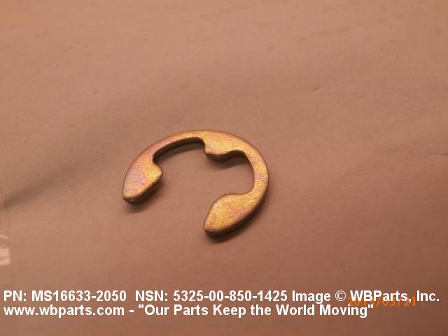 5325-00-850-1425 A resilient metal item, circular or nearly circular, which is designed to be inserted into an internal or external groove and retained by its own spring action, or it may have external prongs or projections designed to be inserted into a hole and retained by spring action of the prongs which grip by imbedding into the material. For items having internal prongs which perform the same function, see PUSH ON NUT. It is used to keep and/or lock a part(s) in position, as a ball bearing on a shaft or in a housing. See also CLIP, RETAINING and PIN, LOCK. Excludes RING, CONNECTING, ROUND.