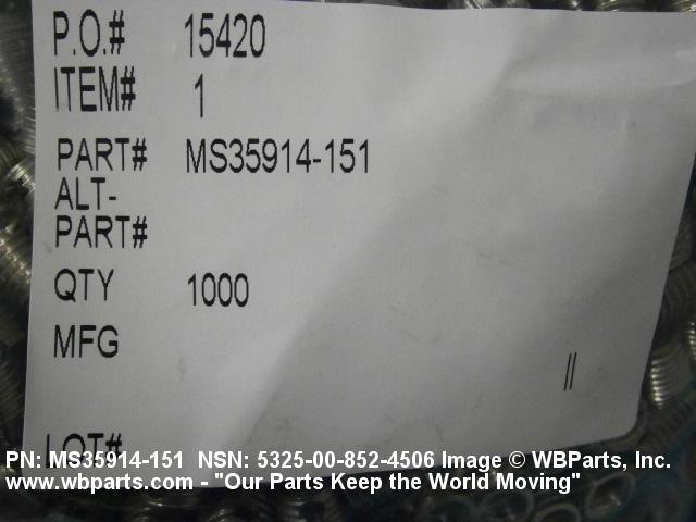 | MS35914-151 | 96906 | MILITARY STANDARDS PROMULGATED BY MILITARY DEPARTMENTS |