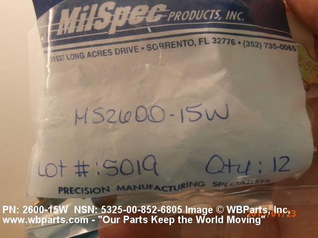 | 2600-15W | 71286 | ALCOA GLOBAL FASTENERS, INC. DBA ALCOA FASTENING SYSTEMS |