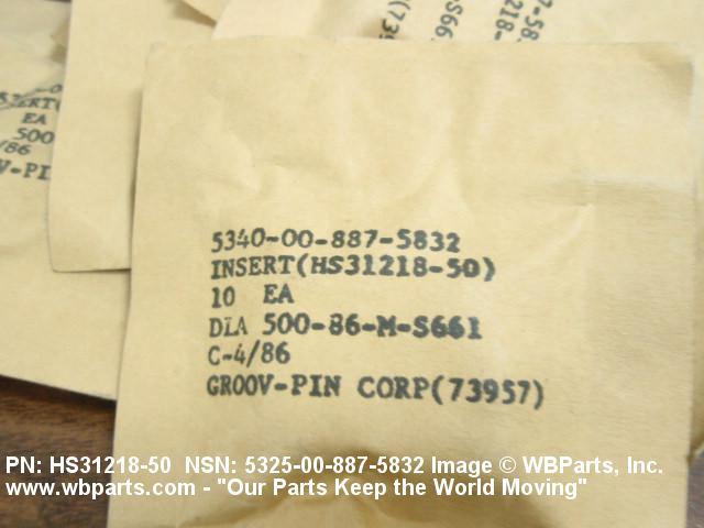 5325-00-887-5832 A cylindrical item which may have wrenching and/or driving facilities and/or shoulders. It is designed to be inserted in a drilled, tapped or a pretapped hole, or molded or pressed into soft material to reduce the size of a tapped hole; to provide threads; to add strength, and/or to prevent stripping. It is one of the following: (1) a one-piece, flanged or unflanged, internally threaded item which may have external threads, and/or serrations around the periphery of the collar, designed to engage a serrated lock ring which is not included with the item; (2) a one-piece precision coiled wire; (3) a two-piece item consisting of an internally threaded cylinder and a mating externally threaded part; or (4) a one-piece internally threaded item whose outside diameter is tapered and/or knurled and/or with fin(s). The internal thread of the item may have a locking feature. Excludes items having a sleeve on on its under portion which can be clinched or crimped. Excludes BUSHING,MACHINE THREAD; NUT,PLAIN,KNURLED; NUT,PLAIN,ROUND; NUT,PLAIN,CLINCH and NUT,SELF-LOCKING,CLINCH. See also NUT,PLAIN,PLATE