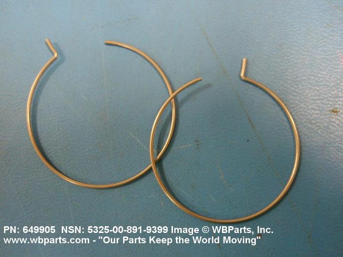 5325-00-891-9399 A resilient metal item, circular or nearly circular, which is designed to be inserted into an internal or external groove and retained by its own spring action, or it may have external prongs or projections designed to be inserted into a hole and retained by spring action of the prongs which grip by imbedding into the material. For items having internal prongs which perform the same function, see PUSH ON NUT. It is used to keep and/or lock a part(s) in position, as a ball bearing on a shaft or in a housing. See also CLIP, RETAINING and PIN, LOCK. Excludes RING, CONNECTING, ROUND.