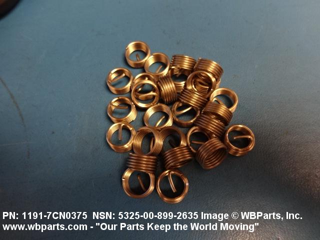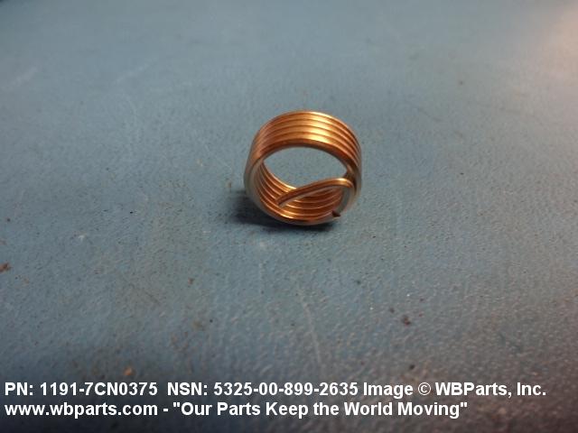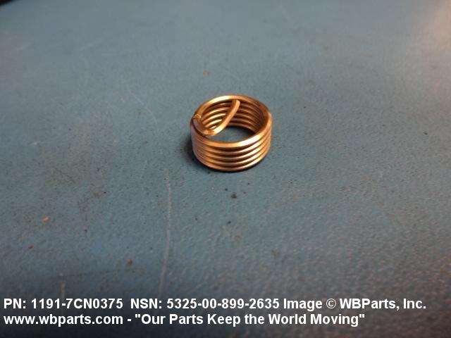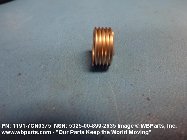 5325-00-899-2635 A cylindrical item which may have wrenching and/or driving facilities and/or shoulders. It is designed to be inserted in a drilled, tapped or a pretapped hole, or molded or pressed into soft material to reduce the size of a tapped hole; to provide threads; to add strength, and/or to prevent stripping. It is one of the following: (1) a one-piece, flanged or unflanged, internally threaded item which may have external threads, and/or serrations around the periphery of the collar, designed to engage a serrated lock ring which is not included with the item; (2) a one-piece precision coiled wire; (3) a two-piece item consisting of an internally threaded cylinder and a mating externally threaded part; or (4) a one-piece internally threaded item whose outside diameter is tapered and/or knurled and/or with fin(s). The internal thread of the item may have a locking feature. Excludes items having a sleeve on on its under portion which can be clinched or crimped. Excludes BUSHING,MACHINE THREAD; NUT,PLAIN,KNURLED; NUT,PLAIN,ROUND; NUT,PLAIN,CLINCH and NUT,SELF-LOCKING,CLINCH. See also NUT,PLAIN,PLATE