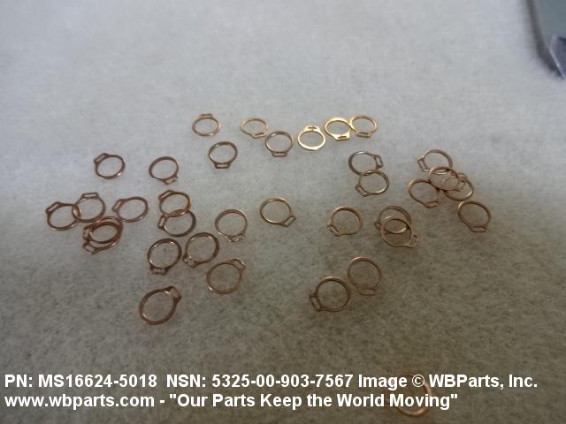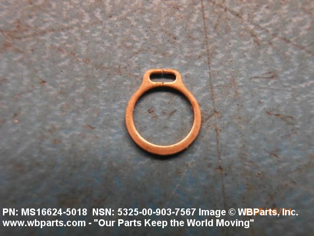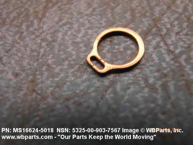 5325-00-903-7567 A resilient metal item, circular or nearly circular, which is designed to be inserted into an internal or external groove and retained by its own spring action, or it may have external prongs or projections designed to be inserted into a hole and retained by spring action of the prongs which grip by imbedding into the material. For items having internal prongs which perform the same function, see PUSH ON NUT. It is used to keep and/or lock a part(s) in position, as a ball bearing on a shaft or in a housing. See also CLIP, RETAINING and PIN, LOCK. Excludes RING, CONNECTING, ROUND.