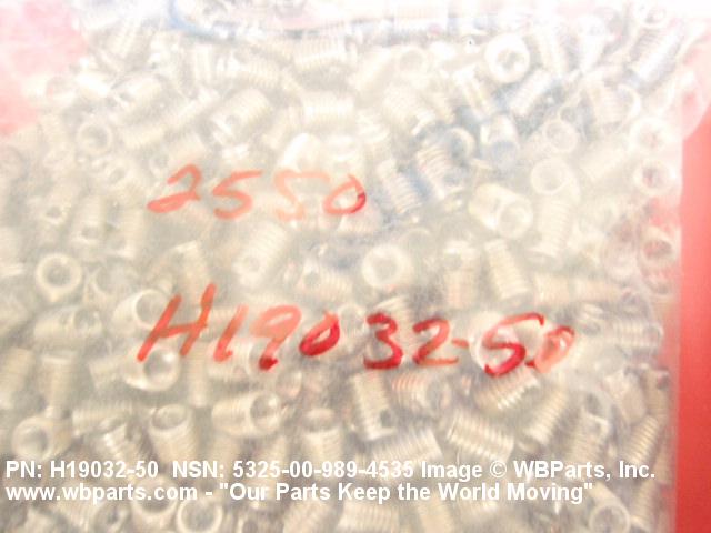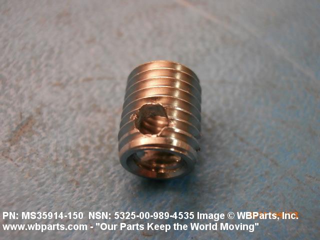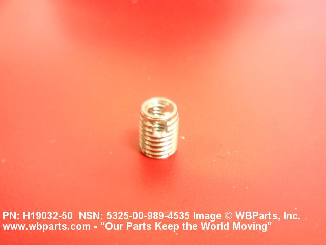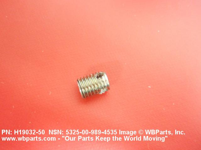 5325-00-989-4535 A cylindrical item which may have wrenching and/or driving facilities and/or shoulders. It is designed to be inserted in a drilled, tapped or a pretapped hole, or molded or pressed into soft material to reduce the size of a tapped hole; to provide threads; to add strength, and/or to prevent stripping. It is one of the following: (1) a one-piece, flanged or unflanged, internally threaded item which may have external threads, and/or serrations around the periphery of the collar, designed to engage a serrated lock ring which is not included with the item; (2) a one-piece precision coiled wire; (3) a two-piece item consisting of an internally threaded cylinder and a mating externally threaded part; or (4) a one-piece internally threaded item whose outside diameter is tapered and/or knurled and/or with fin(s). The internal thread of the item may have a locking feature. Excludes items having a sleeve on on its under portion which can be clinched or crimped. Excludes BUSHING,MACHINE THREAD; NUT,PLAIN,KNURLED; NUT,PLAIN,ROUND; NUT,PLAIN,CLINCH and NUT,SELF-LOCKING,CLINCH. See also NUT,PLAIN,PLATE