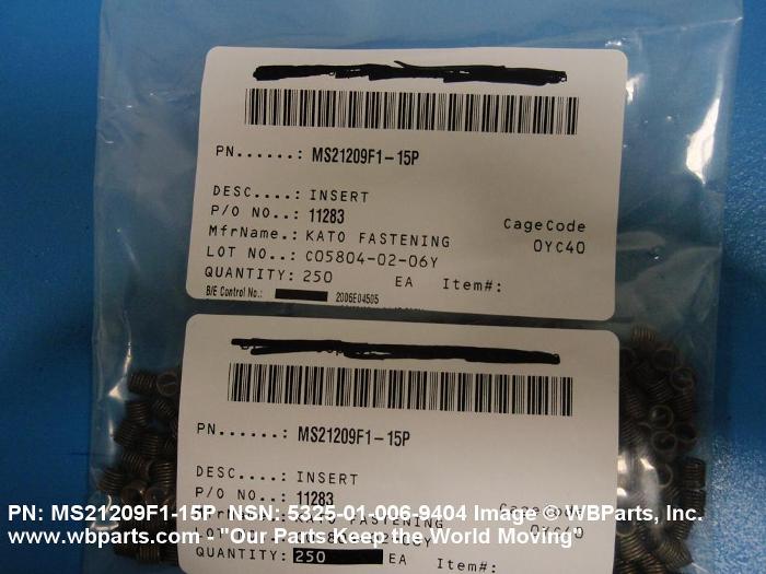 NSN 5325-01-006-9404 MS21209F115P, MS21209F1-15P, 0124931190