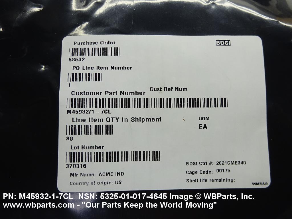 NSN 5325-01-017-4645 M45932/1-7CL, M4593217CL, SR162L0014