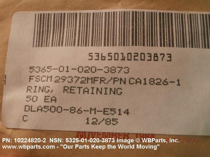 Part Alternates: CA18163, MILSTD130K, MIL-STD-130K, 10224820-2, 5325-01-020-3873, 01-020-3873, 5325010203873, 102248202, 010203873