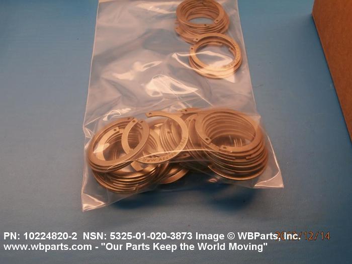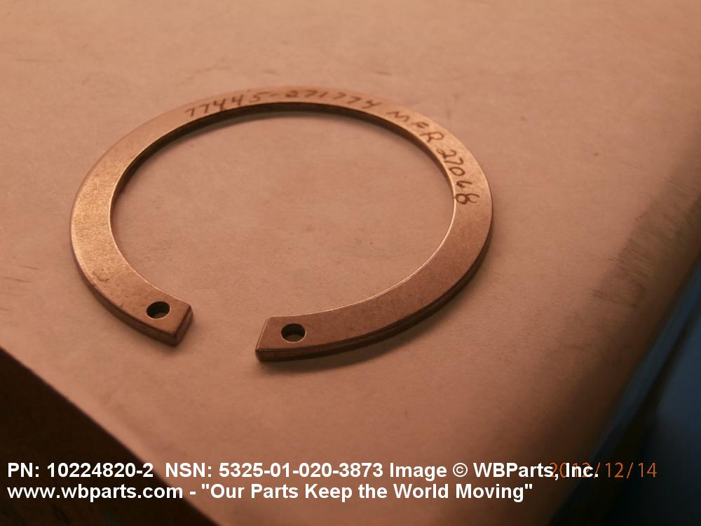 5325-01-020-3873 A resilient metal item, circular or nearly circular, which is designed to be inserted into an internal or external groove and retained by its own spring action, or it may have external prongs or projections designed to be inserted into a hole and retained by spring action of the prongs which grip by imbedding into the material. For items having internal prongs which perform the same function, see PUSH ON NUT. It is used to keep and/or lock a part(s) in position, as a ball bearing on a shaft or in a housing. See also CLIP, RETAINING and PIN, LOCK. Excludes RING, CONNECTING, ROUND.