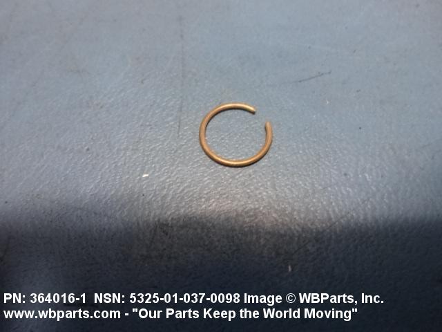 5325-01-037-0098 A resilient metal item, circular or nearly circular, which is designed to be inserted into an internal or external groove and retained by its own spring action, or it may have external prongs or projections designed to be inserted into a hole and retained by spring action of the prongs which grip by imbedding into the material. For items having internal prongs which perform the same function, see PUSH ON NUT. It is used to keep and/or lock a part(s) in position, as a ball bearing on a shaft or in a housing. See also CLIP, RETAINING and PIN, LOCK. Excludes RING, CONNECTING, ROUND.