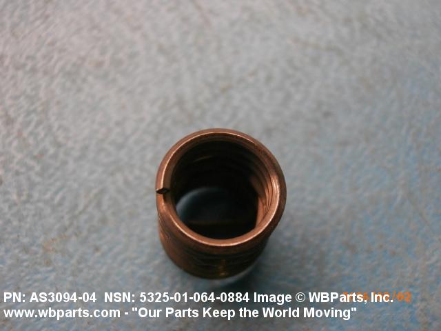 5325-01-064-0884 A cylindrical item which may have wrenching and/or driving facilities and/or shoulders. It is designed to be inserted in a drilled, tapped or a pretapped hole, or molded or pressed into soft material to reduce the size of a tapped hole; to provide threads; to add strength, and/or to prevent stripping. It is one of the following: (1) a one-piece, flanged or unflanged, internally threaded item which may have external threads, and/or serrations around the periphery of the collar, designed to engage a serrated lock ring which is not included with the item; (2) a one-piece precision coiled wire; (3) a two-piece item consisting of an internally threaded cylinder and a mating externally threaded part; or (4) a one-piece internally threaded item whose outside diameter is tapered and/or knurled and/or with fin(s). The internal thread of the item may have a locking feature. Excludes items having a sleeve on on its under portion which can be clinched or crimped. Excludes BUSHING,MACHINE THREAD; NUT,PLAIN,KNURLED; NUT,PLAIN,ROUND; NUT,PLAIN,CLINCH and NUT,SELF-LOCKING,CLINCH. See also NUT,PLAIN,PLATE