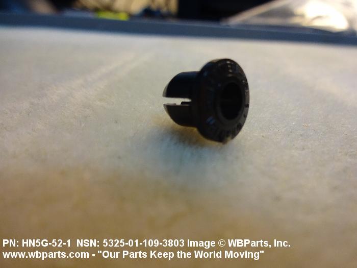 5325-01-109-3803 An item of any peripheral shape having flanges or groove(s) on its outer perimeter to provide a self-retaining characteristic when inserted in a hole, clamp, or the like. Designed for the purpose of protecting and/or insulating wires, cables and other items passing through it. Excludes BUSHING, NONMETALLIC; BUMPER; and INSULATOR BUSHING.