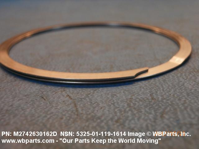 5325-01-119-1614 A resilient metal item, circular or nearly circular, which is designed to be inserted into an internal or external groove and retained by its own spring action, or it may have external prongs or projections designed to be inserted into a hole and retained by spring action of the prongs which grip by imbedding into the material. For items having internal prongs which perform the same function, see PUSH ON NUT. It is used to keep and/or lock a part(s) in position, as a ball bearing on a shaft or in a housing. See also CLIP, RETAINING and PIN, LOCK. Excludes RING, CONNECTING, ROUND.