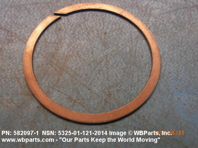 5325-01-121-2014 A resilient metal item, circular or nearly circular, which is designed to be inserted into an internal or external groove and retained by its own spring action, or it may have external prongs or projections designed to be inserted into a hole and retained by spring action of the prongs which grip by imbedding into the material. For items having internal prongs which perform the same function, see PUSH ON NUT. It is used to keep and/or lock a part(s) in position, as a ball bearing on a shaft or in a housing. See also CLIP, RETAINING and PIN, LOCK. Excludes RING, CONNECTING, ROUND.