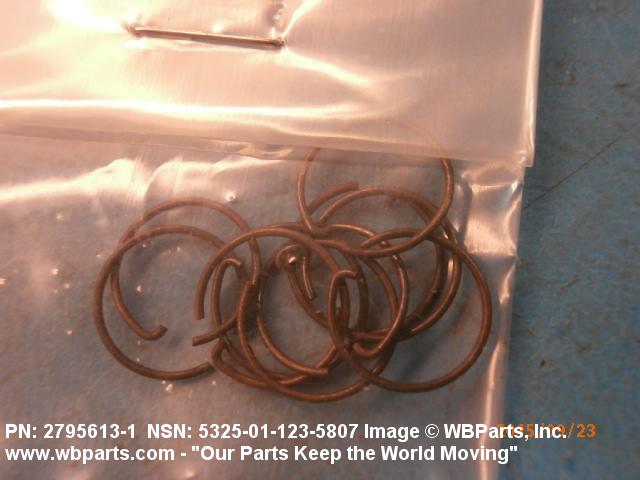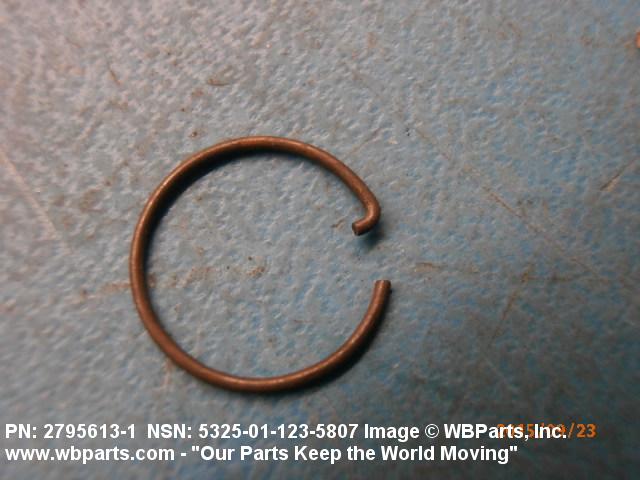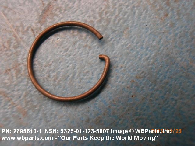 5325-01-123-5807 A resilient metal item, circular or nearly circular, which is designed to be inserted into an internal or external groove and retained by its own spring action, or it may have external prongs or projections designed to be inserted into a hole and retained by spring action of the prongs which grip by imbedding into the material. For items having internal prongs which perform the same function, see PUSH ON NUT. It is used to keep and/or lock a part(s) in position, as a ball bearing on a shaft or in a housing. See also CLIP, RETAINING and PIN, LOCK. Excludes RING, CONNECTING, ROUND.