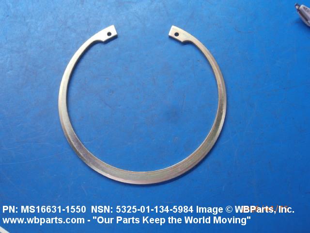 5325-01-134-5984 A resilient metal item, circular or nearly circular, which is designed to be inserted into an internal or external groove and retained by its own spring action, or it may have external prongs or projections designed to be inserted into a hole and retained by spring action of the prongs which grip by imbedding into the material. For items having internal prongs which perform the same function, see PUSH ON NUT. It is used to keep and/or lock a part(s) in position, as a ball bearing on a shaft or in a housing. See also CLIP, RETAINING and PIN, LOCK. Excludes RING, CONNECTING, ROUND.