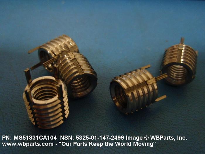 5325-01-147-2499 A cylindrical item which may have wrenching and/or driving facilities and/or shoulders. It is designed to be inserted in a drilled, tapped or a pretapped hole, or molded or pressed into soft material to reduce the size of a tapped hole; to provide threads; to add strength, and/or to prevent stripping. It is one of the following: (1) a one-piece, flanged or unflanged, internally threaded item which may have external threads, and/or serrations around the periphery of the collar, designed to engage a serrated lock ring which is not included with the item; (2) a one-piece precision coiled wire; (3) a two-piece item consisting of an internally threaded cylinder and a mating externally threaded part; or (4) a one-piece internally threaded item whose outside diameter is tapered and/or knurled and/or with fin(s). The internal thread of the item may have a locking feature. Excludes items having a sleeve on on its under portion which can be clinched or crimped. Excludes BUSHING,MACHINE THREAD; NUT,PLAIN,KNURLED; NUT,PLAIN,ROUND; NUT,PLAIN,CLINCH and NUT,SELF-LOCKING,CLINCH. See also NUT,PLAIN,PLATE