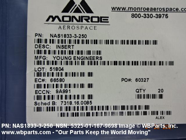 NSN 5325-01-167-9698 NAS18333250, NAS1833-3-250, SL3023250SN