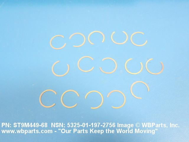 5325-01-197-2756 A resilient metal item, circular or nearly circular, which is designed to be inserted into an internal or external groove and retained by its own spring action, or it may have external prongs or projections designed to be inserted into a hole and retained by spring action of the prongs which grip by imbedding into the material. For items having internal prongs which perform the same function, see PUSH ON NUT. It is used to keep and/or lock a part(s) in position, as a ball bearing on a shaft or in a housing. See also CLIP, RETAINING and PIN, LOCK. Excludes RING, CONNECTING, ROUND.