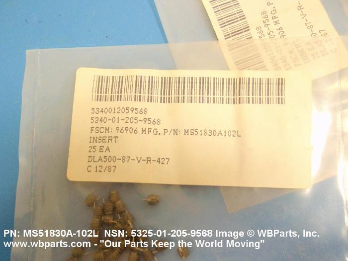 Part Alternates: MS51830A102L, 5325-01-205-9568, 01-205-9568, 5325012059568, 012059568
