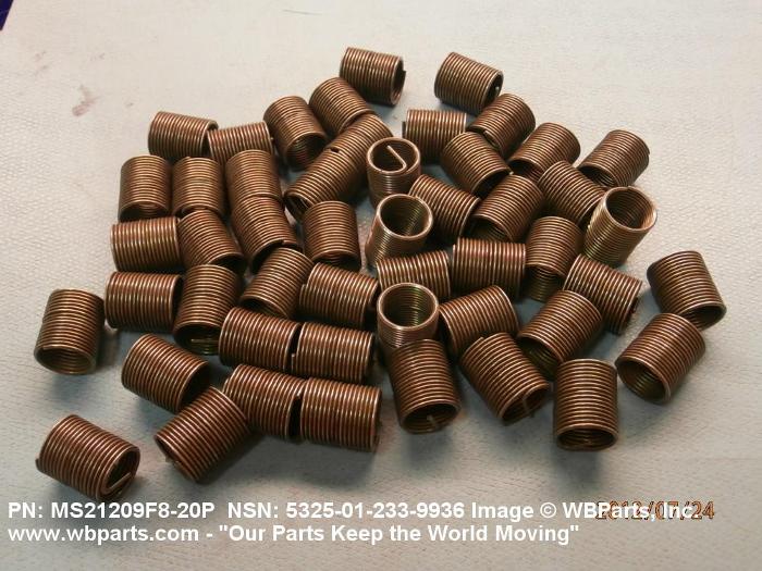 5325-01-233-9936 A cylindrical item which may have wrenching and/or driving facilities and/or shoulders. It is designed to be inserted in a drilled, tapped or a pretapped hole, or molded or pressed into soft material to reduce the size of a tapped hole; to provide threads; to add strength, and/or to prevent stripping. It is one of the following: (1) a one-piece, flanged or unflanged, internally threaded item which may have external threads, and/or serrations around the periphery of the collar, designed to engage a serrated lock ring which is not included with the item; (2) a one-piece precision coiled wire; (3) a two-piece item consisting of an internally threaded cylinder and a mating externally threaded part; or (4) a one-piece internally threaded item whose outside diameter is tapered and/or knurled and/or with fin(s). The internal thread of the item may have a locking feature. Excludes items having a sleeve on on its under portion which can be clinched or crimped. Excludes BUSHING,MACHINE THREAD; NUT,PLAIN,KNURLED; NUT,PLAIN,ROUND; NUT,PLAIN,CLINCH and NUT,SELF-LOCKING,CLINCH. See also NUT,PLAIN,PLATE