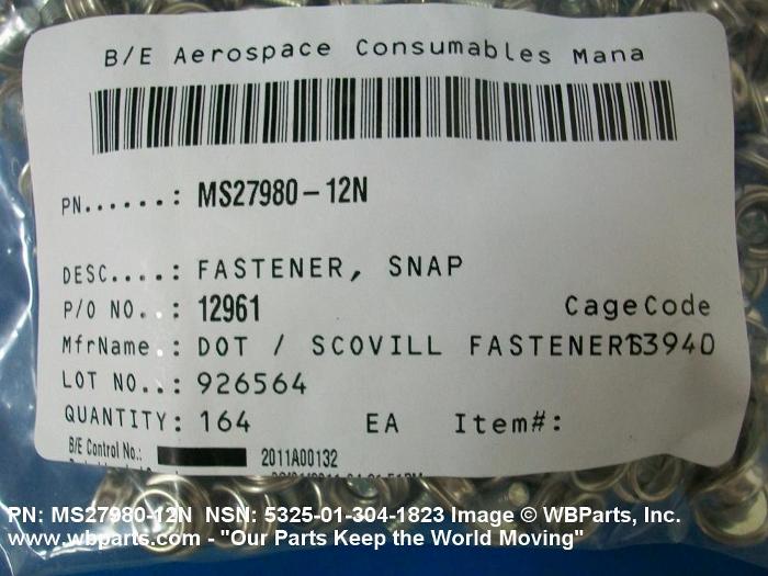 NSN 5325-01-304-1823 MS2798012N, MS27980-12N, 01-304-1823