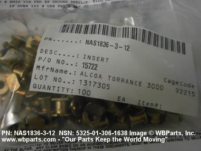 NSN 5325-01-306-1638 NAS1836312, NAS1836-3-12, 01-306-1638