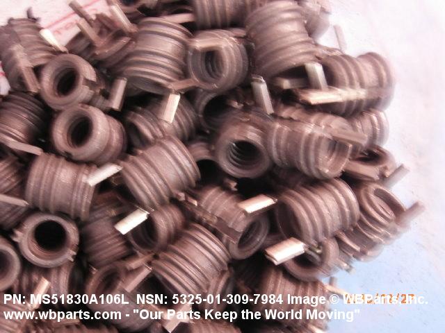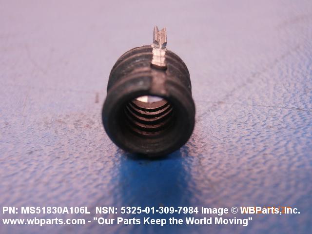 5325-01-309-7984 A cylindrical item which may have wrenching and/or driving facilities and/or shoulders. It is designed to be inserted in a drilled, tapped or a pretapped hole, or molded or pressed into soft material to reduce the size of a tapped hole; to provide threads; to add strength, and/or to prevent stripping. It is one of the following: (1) a one-piece, flanged or unflanged, internally threaded item which may have external threads, and/or serrations around the periphery of the collar, designed to engage a serrated lock ring which is not included with the item; (2) a one-piece precision coiled wire; (3) a two-piece item consisting of an internally threaded cylinder and a mating externally threaded part; or (4) a one-piece internally threaded item whose outside diameter is tapered and/or knurled and/or with fin(s). The internal thread of the item may have a locking feature. Excludes items having a sleeve on on its under portion which can be clinched or crimped. Excludes BUSHING,MACHINE THREAD; NUT,PLAIN,KNURLED; NUT,PLAIN,ROUND; NUT,PLAIN,CLINCH and NUT,SELF-LOCKING,CLINCH. See also NUT,PLAIN,PLATE